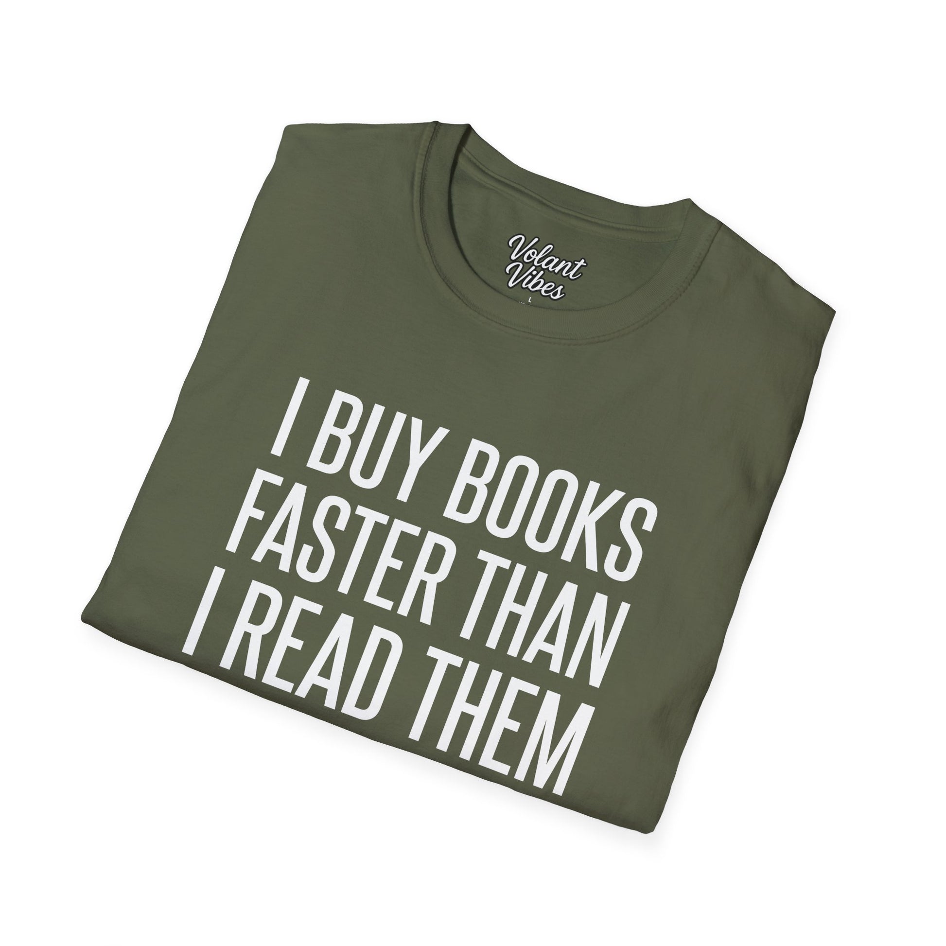 For every reader whose book-buying speed exceeds their reading speed. This minimalist tee is printed on our Classic softstyle 100% ring-spun cotton unisex T-shirt (fiber content may vary by color) for a comfortable everyday fit. Printed and shipped in the USA.